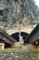 Potomac river flowing under the railway junction (main line on the right, Winchester Branch on the left), and the Shenandoah river joining up. Here's a related website. {04-09E34} Harper's Ferry |